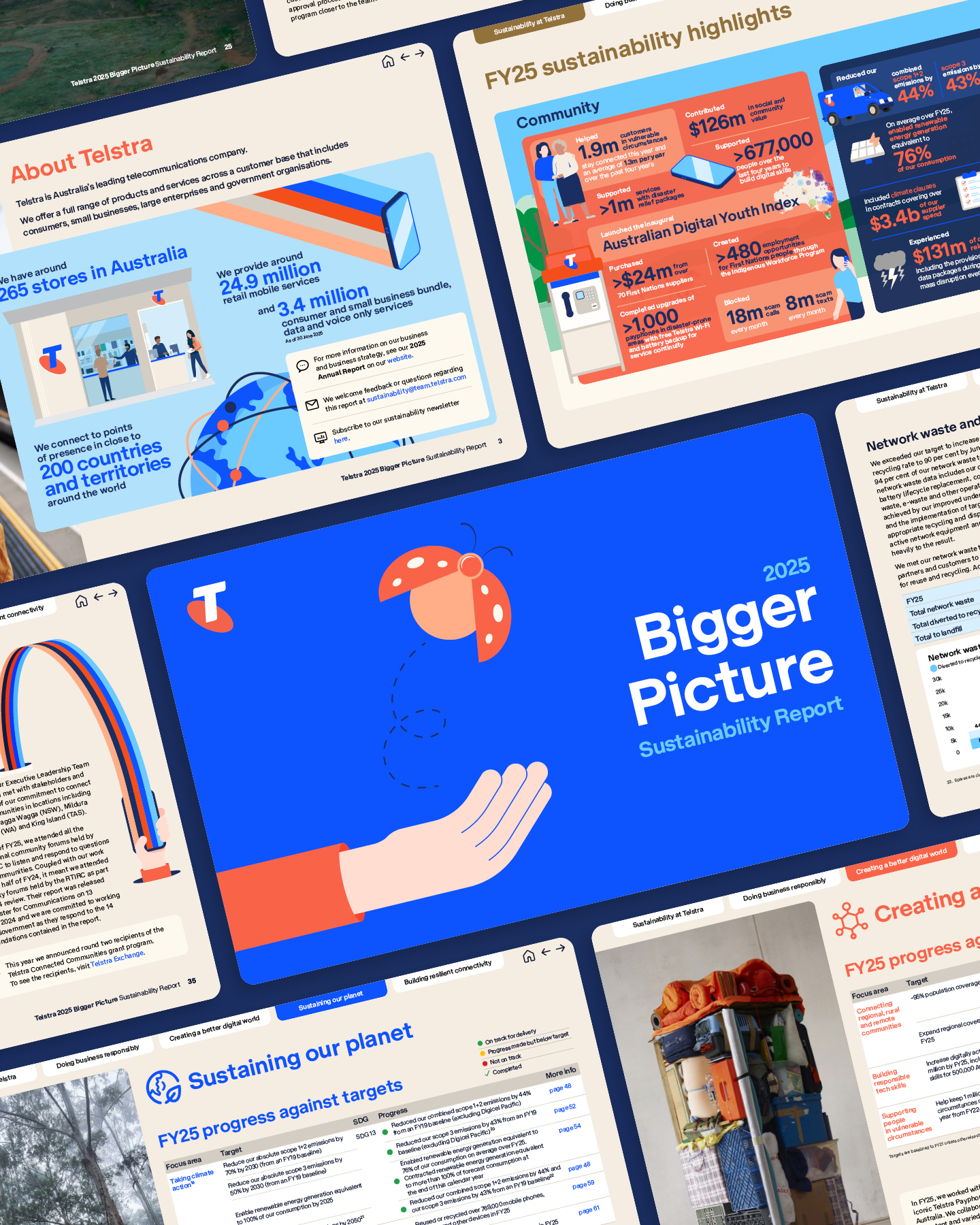 ClientTelstra ServicesGraphic Design, Creative Direction, Illustration, InfographicsYear2024Linkhttp://www.telstra.com/sustainability